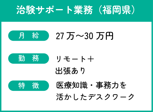 - 治験・データモニタリングサポート(CRC業務)